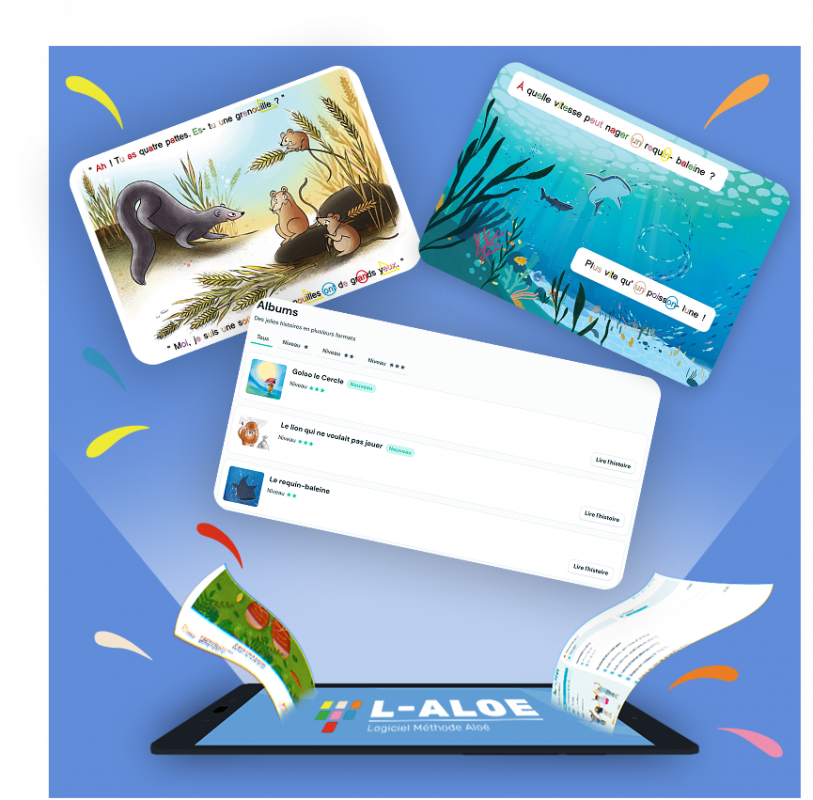 L-ALOE intègre des ressources pédagogiques utilisables sur TBI ou en lecture classique sur écran (tablettes, ordinateurs) :