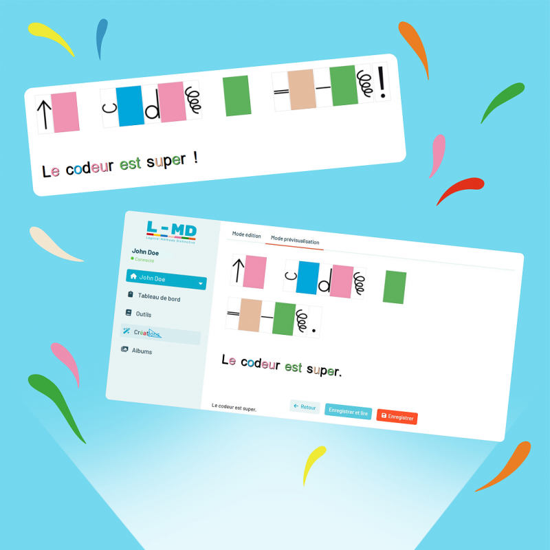 ➡️ Flexibilité du codage choisi : cartes voyelles et / ou consonnes, texte codé en couleur ou monochrome, script ou cursif, codage en ligne, …