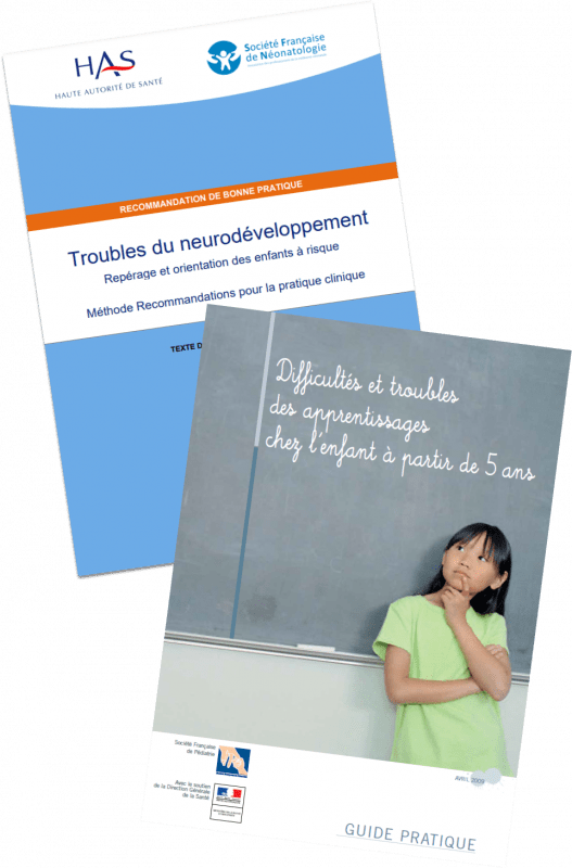 - Société Française de Pédiatrie – SFP – guide pratique: « Difficultés et troubles des apprentissages chez l’enfant à partir de 5 ans », avril 2009.